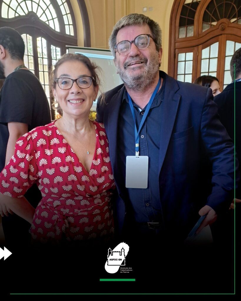 Na manhã desta sexta-feira (05/04), o presidente da Asfoc-SN, Paulo Garrido, e a diretora do sindicato, Alessandra Penna e Costa, estiveram presentes na cerimônia de celebração do centenário do IFF/Fiocruz.