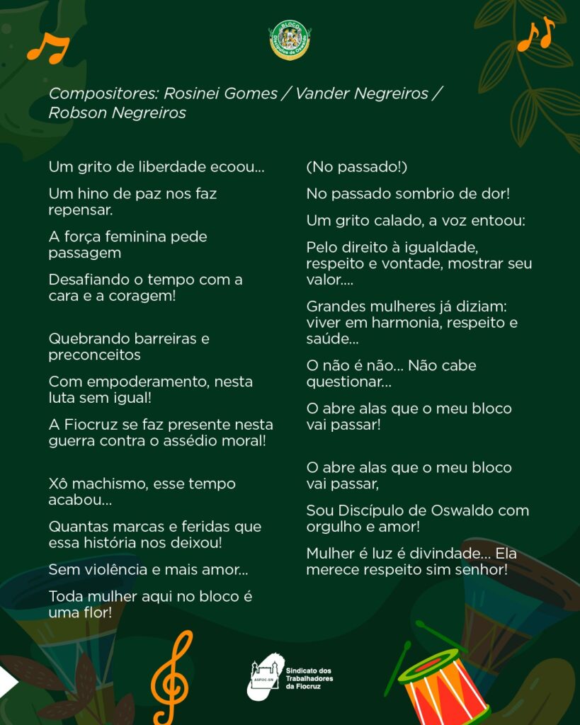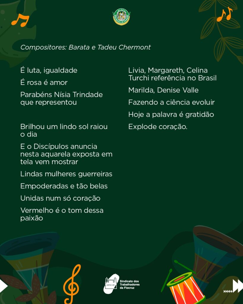 A Asfoc convida associadas, associados e a comunidade a acompanharem e participarem desse momento de celebração da cultura, do samba e da história do Discípulos de Oswaldo.